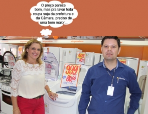 O clic é de terça-feira, quando a prefeita Regina Dubay foi prestigiar a reabertura da filial das Lojas Colombo, que teve que ser reconstruída após o incêndio do ano passado. A recepção ficou por conta do gerente Marcelo Rossi. E a pose, como deu pra ver, em em frente à seção de máquinas de lavar roupas...