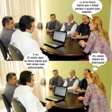 Os cliques são desta segunda-feira, quando o presidente da ACMF, Miguel Pedro Abudi Jr, esteve reunido com a prefeita Regina Dubay. Foi falar das ações que a associação vem desenvolvendo e da necessidade de buscar mais recursos para a manutenção da modalidade. Tomara que a visita traga sorte, porque Campo Mourão acumula quatro derrotas seguidas na Chave Ouro. Xô, azar!...
