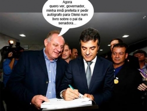 Olha aí quem também foi a Curitiba para o lançamento do livro "José Richa, História e Imagens de um Político de Verdade". Ele mesmo: o agricultor mourãoense Cezar Bronzel, irmão da prefeita Regina Dubay. Não só foi, como conseguiu autógrafo do governador Beto Richa, que é filho do protaganista. Politicamente, todo mundo sabe, Cezão defende um lado e Regina outro bem diferente. Ah, acontece nas melhores famílias...