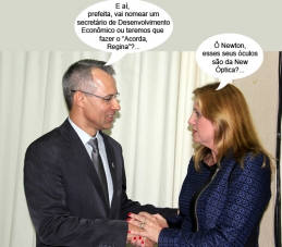O clic é de quinta-feira, durante a posse festiva da nova diretoria da Acicam. A prefeita Regina Dubay esteve por lá e cumrpimentou o presidente Newton Leal. A Acicam vem cobrando a nomeação de um secretário de Desenvolvimento Econômico, mas a prefeita já avisou que quer fazer tudo com muita calma.