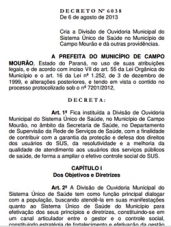 A prefeitura de Campo Mourão acaba de criar a Divisão de Ouvidoria Municipal do Sistema Único de Saúde.