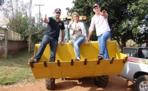 A série "Olha "nóis" com a retroescavadeira da Dilma" traz agora a prefeita de Farol, Angela Kraus. Na hora de fazer a pose, ela foi original. Subiu na pá do trator e tudo. A entrega da retro foi feita em Toledo e a chegada a Farol inclui uma carreata pelas ruas da cidade. Ah, não é todo dia que se ganha uma máquina assim, a fundo perdido, né?...