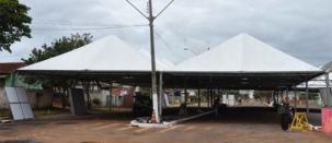 Para servir tanta gente, tem barraca sendo montada até no meio da rua (foto).