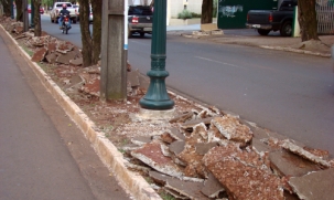 Faz tempo que a prefeitura de Campo Mourão não consegue manter em dia o ajardinamento dos canteiros das avenidas que cortam a cidade. Agora mesmo, o matinho já está aparecendo. Mesmo assim, parece que o município resolveu mexer nos canteiros da av. Manoel Mendes de Camargo, num trecho que havia concreto no lugar da grama. O calçamento foi todo destruído em duas quadras. Ah, nem Freud explicaria essa...