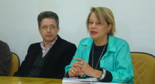Ela participou de reunião com prefeitos junto com o presidente Luiz Marcos Mancebo Campos.