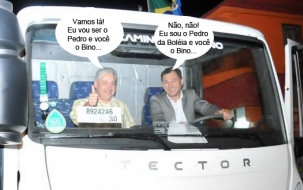 O clic é de Mamborê, onde o prefeito Nei Calori (ao volante) aproveitou a Expomam e o aniversário de 53 anos do município para fazer a entrega dos caminhões comprados com recursos do PAM, aquele programa a fundo perdido do governo do Estado. O deputado Douglas Fabrício participou da entrega. A Expomam termina nesta terça, com show de Léo & Giba. E pra quem tava com saudade da "Carga Pesada", eis aí os novos Pedro e Bino...