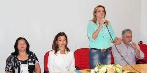 Regina Dubay, prefeita de Campo Mourão, após a abertura da Conferência Regional de Assistência Social, nesta quarta-feira.