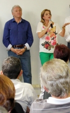 Regina Dubay (PR), prefeita de Campo Mourão, voltando a dizer que não ficará quieta com as críticas de adversários; em evento na prefeitura, nesta sexta-feira pela manhã.