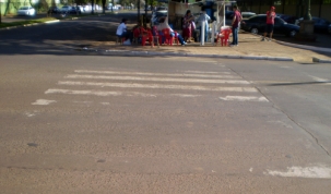 “A foto tirada sexta-feira, ao lado do Mercadão Municipal de Campo Mourão, mostra as pessoas usando as calçadas; mostra que a faixa de pedestre sumiu há muito tempo. A sinalização de trânsito de nossa Campo Mourão está sem zelo”. Fraterno Maria Nunes