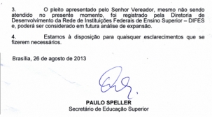 Em oficio assinado no dia 26 de agosto, o secretário de Educação Superior, Paulo Speller, diz que novos cursos demandam estudos de viabilidade.