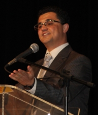 Eder Stela, diretor da Fecilcam, ao discursar no evento em que foi empossado oficialmente; nesta quinta-feira, no Teatro Municipal.