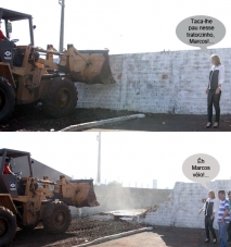 Os cliques são desta terça-feira, quando a prefeita Regina Dubay foi acompanhar a abertura da rua Robson Paitach, que agora vai ligar as avenidas José Tadeu Nunes e Prefeito Pedro Viriato de Souza Filho, passando em frente ao Centro da Juventude. Para isso, um muro da Secretaria de Obras teve que ser derrubado, já que a rua vai passar por ali. O trecho será asfaltado. Ô gente, se até o muro de Berlin caiu...
