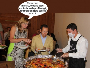 O clic é desta quarta-feira, quando o ministro dos Transportes, Paulo Passos, foi recepcionado no Recanto do Criador com um carneiro no buraco. Ele jantou junto com a prefeita Regina Dubay e saiu elogiando o prato típico de Campo Mourão. Ah, se for pra liberar mais obras para Campo Mourão e região, sai mais uns tachinhos, não sai?...