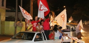 Apesar da derrota em casa, o prefeito Gilson Cassol foi pra rua festejar a reeleição de Dilma.