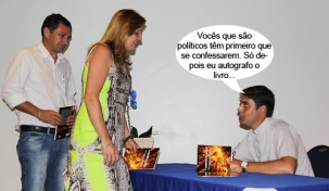 O clic é desta segunda-feira, quando o padre Rafael Belinato Barreto, de Campo Mourão, lançou seu mais novo livro - “A Centelha na Palha”. A prefeita anfitriã Regina Dubay e o prefeito de Mamborê, Nei Calori, que é primo do autor, prestigiaram o evento. Fizeam fila e tudo para receber o autógrafo do padre, que é imortal da Academia Mourãoense de Letras.