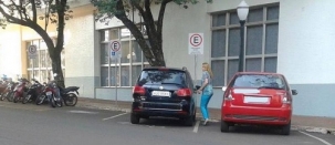 Uma foto da prefeita Regina Dubay entrando em carro da prefeitura estacionado em vaga de idoso foi parar no Facebook.