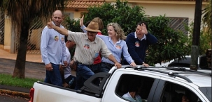 Em Araruna, por causa da chuva, a governadorável Gleisi Hoffmann não conseguiu chegar para a carreata que estava marcada. Mas teve carreata assim mesmo, puxada pelo deputado federal Zeca Dirceu e pelo prefeito Fabiano Antoniassi. Em tempo: Antoniassi é do PMDB e apoia Requião, mas o deputado chamou...