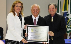 A sessão solene da Câmara realizada na quinta-feira previa a entrega de dois títulos de cidadania honorária, mas só um foi entregue. O empresário Teófilo Boiko, do Expresso Nordeste, recebeu a homenagem das mãos da prefeita Regina Dubay e do vereador autor da proposição, Eraldo Teodoro. O irmão dele, Germano Boiko, também receberia o título, mas não pode comparecer por problemas de saúde. A homenagem ficou para ser entregue em outra sessão. Hummmm, mas vai ter outro jantar?...