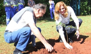 Teve plantio de árvores neste fim de semana para comemorar o Dia da Árvore (21 de setembro). No domingo, no Parque do Lago, até a Banda Municipal participou. A prefeita Regina Dubay plantou a primeira muda, junto com Dirceu Wanderbrook, da Agenda 21. “Plantamos consciência Ambiental para colhermos atitudes sustentáveis”, destaca uma placa deixada no local pela Agenda 21. Ação do Rotary também plantou árvores, sábado, nos jardins Tropical e Aeroporto. E chega e cortar árvore pública sem necesidade, né?...