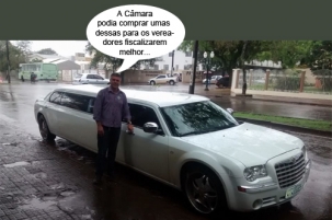 O clic é de sexta-feira, quando uma limusine passou por Campo Mourão a caminho de um casamento em Quinta do Sol. O vereador Edílson Martins não se aguentou sem chegar perto e dar uma conferida no carrão. Fez fotos internas e tudo para postar no Facebook. Também fez pose ao lado do veículo. Ah, que Tio Patinhas, que nada!...