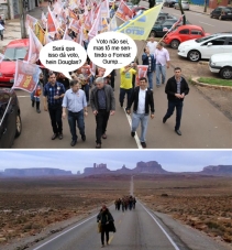 O clic é do fim de semana, quando o deputado Douglas Fabrício participou de carreata por ruas do centro de Campo Mourão. O ex-prefeito Tauillo Tezelli foi um dos presente. O vereador Sidnei Jardim, outro. Doglas foi à frente, puxando o grupo. Qualquer semelhança com o Forrest Gump, do filme, é mera coincidência...