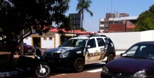"Viatura da Polícia Civil estaciona sobre a faixa de segurança numa esquina da av. Irmãos Pereira, no centro de Campo Mourão, nesta quarta-feira, por volta das 12h15".