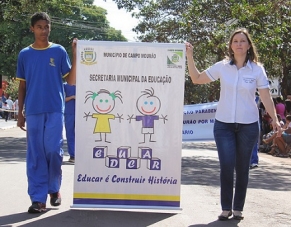 Os secretários municipais Márcio Alencar (Saúde) e Karla Tureck (Educação) participaram do desfile de aniversário de Campo Mourão, nesta sexta-feira. Ele foram à frente das equipes de suas pastas, que desfilaram pela avenida. Portanto, não basta ser secretário, tem que participar. E colocar a cara a tapa...