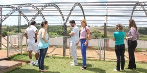 A prefeita Regina Dubay esteve na escola municipal Constantino Lisboa de Medeiros, no Damferi. Foi vistoriar a instalação de cobertura da quadra de esportes. O investimento é de R$ 173,5 mil, com recursos do governo federal e contrapartida da prefeitura. A secretária Karla Tureck (Educaçã), a diretora da escola, Giseli Florentin Alves da Silva, e o presidente da Associação de Moradores do Damferi, Jacir de Oliveira, acompanharam a visitinha.