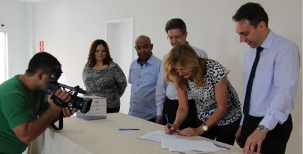 O presidente Luiz Marcos Mancebo Campos e a prefeita Regina Dubay assinaram a papelada.
