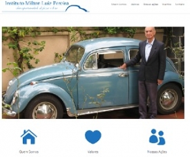 A foto do ex-prefeito com o Fusca que ganhou dos moradores de Campo Mourão está na abertura do site do IMLP.