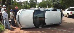 Campo Mourão já teve o primeiro carro tombado, em 2015, no perímetro urbano. Foi nesta terça-feira, na rua São Josafat, quase na esquina com a av. José Custódio de Oliveira. A motorista do Palio perdeu o controle, bateu num veículo estacionado e acabou tombando. Ninguém se feriu. Menos mal.