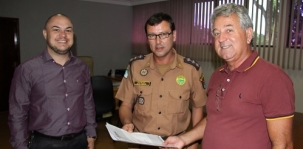 O diretor de Trânsito, Nelson Casarolli, e o procurador geral Márcio Berbet trataram o tema com o subcomandante major Júlio César da Rosa.