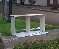 Cena 1: o canteiro central da av. Manoel Mendes de Camargo, esquina com a rua Mato Grosso, serve de depósito para o que restou de um móvel de escritório. Cena2: a calçada da av. Capitão Índio Bandeira, entre as ruas São Paulo e Harrison José Borges, recebe de "enfeite" uma mesa de escritório caindo aos pedaços. As duas fotos foram feitas na manhã desta segunda-feira.