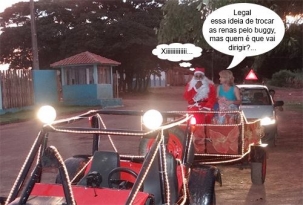 Olha aí mais um clic da chegada do Papai Noel, de buggy, a Farol, na última sexta-feira. O "bom velinho" veio ao lado da prefeita Ângela Kraus, numa carretinha puxada pelo buggy. Olha aí, com o fim das renas, agrada-se a sociedade protetora dos animais e ainda gera emprego de motorista...