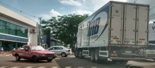 Olha só o tamanho do caminhãozão, com quatro eixos, fazendo o contorno no centro de Campo Mourão. Isso em plena av. Capitão Índio Bandeira, por volta das 16h desta sexta-feira. Não é horário de carga e descarga e, nem que fosse, esse tamanho de caminhão não poderia estar nesse local.