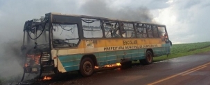 Olha só como ficou o ônibus do transporte escolar de Quinta do Sol. Foi totalmente queimada, provavelmente por pane elétrica, quando voltava da região do "Pesqueiro do Zé". Na hora do incidente, apenas o motorista estava no veículo e ele não se feriu. O busão seria o mais antigo da frota do município.