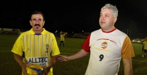 Ademir da Guia não veio. Basílio também não. Mas aconteceu nesta sexta-feira o jogo da seleção brasileira de másters contra um combinadão de Campo Mourão. Até o deputado Douglas Fabrício jogou. O time dos atros teve Zenon, Dinei e Biro-Biro, entre outros, e ganhou por 6 a 0. Também, com Biro-Biro, que foi melhor que Maradona...