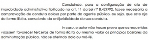 "Embora se tenha vislumbrado algumas irregularidades, nada nos autos indica que tenham sido feitas com o intuito de satisfazer interesses pessoais ou beneficiar terceiros, ou seja, que tenha havido o dolo necessário para configuração do ato ímprobo".