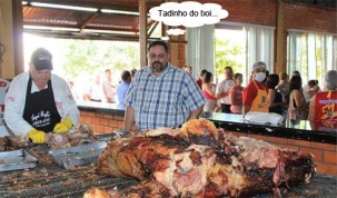 O clic é deste domingo, em Nova Cantu, onde foi servido, dentro da programação da Expo-Cantu, o "boi à moda cantu". É o mais novo prato típico da região. O boi é assado inteiro, no rolete. O deputado estadual Artagão Jr prestigiou a festa e foi conferir de perto como é a tal "moda Cantu". Pela cara, ficou com dó do bicho, não ficou?...