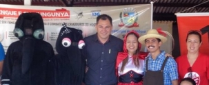 O que é isso? Monstros alienígenas invadiram Mamborê e renderam o prefeito Nei Calori? Nada disso. Foi só uma campanha da Secretaria de Saúde contra a dengue e a chikunkunya, com direito a gente usando fantasia dos perigosos mosquinhos. A tal da chikunkunya é chamada de "prima da dengue" e tá chegando com tudo. Detalhe: é uma priminha bem mais "marvada". Ah, como diz o ditado, nada é tão ruim que não possa piorar...