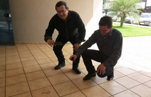 Os vereadores Gilson Martins (Boa Esperança) e Tiago Elicker (Nova Cantu) chegaram cedo neste sábado à Acamdoze, em Campo Mourão. Pudera. São os candidatos à presidência na eleição deste sábado. Mas olha só o que é que eles encontraram na chegada: um filhote de cobra. E dê-lhe foto pra postar nas redes sociais...