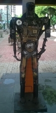 O robô em exposição no calçadão de Campo Mourão está atrás de um nome. E você pode dar sugestões. Trata-se de criação do artista plástico J.C. Amaral, feito com material reciclado. O robô tem um sistema de som e pode ser usado pra fazer propagandas em porta de loja ou para animar festas infantis.