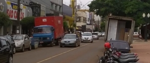 O clic é de quinta-feira, às 10h. A av. Capitão Índio Bandeira fica estreita no trecho do calçadão, mas mesmo assim tem caminhão parado dos dois lados da vida fazendo carga e descarga. Os caminhões são do tamanho correto para o centro, mas estão no horário errado. A carga e descarga só pode ser feita das 18h às 9h30. Olha o abuso ai, gente!...