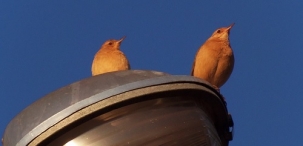 "Belo casal de Joões de Barro sobre uma lâmpada em um poste próximo ao Lar Dom Bosco, saída para Cascavel".