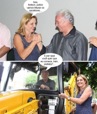 Os cliques são de sexta-feira, quando a prefeita Regina Dubay oficializou a indicação do ex-prefeito Nelson Tureck como presidente da Codusa. O evento também teve a entrega oficial de uma nova pá-carregadeira para a companhia. Imagina se Tureck iria perder a chance de fazer pose para os fotógrafos ao volante da máquina...
