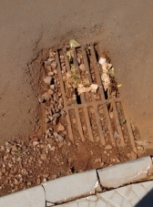 "Bueiros na esquina do INSS em estado deplorável. Um entupido e outro que foi obrigado a engolir tinta de asfalto. Solicitei providências". Profª Vilma (vereadora)