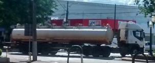 Carreta passa pelo centro de Campo Mourão na tarde desta sexta-feira. O flagra é na av. Capitão Índio Bandeira, esquina com rua Santa Catarina.