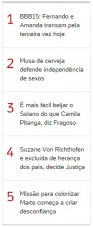 Crise econômica? Alta da inflação? Dólar a R$ 3,30? Reforma política? Ministro demitido? Delação premiada? Escândalo no HSBC? Petrolão? Longe disso. Veja ao lado quais foram as cinco matérias mais acessadas nesta sexta-feira no portal UOL. Como diria o narrador de futebol Januário de Oliveira: "É isso que o povo gosta!"...