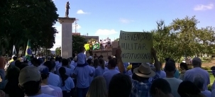 O ato começou em frente à Catedral São José e terminou com uma passeata pela av. Irmãos Pereira.