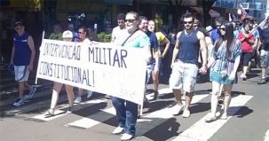 “Intervenção militar constitucional”, dizia o cartaz de um manifestante.